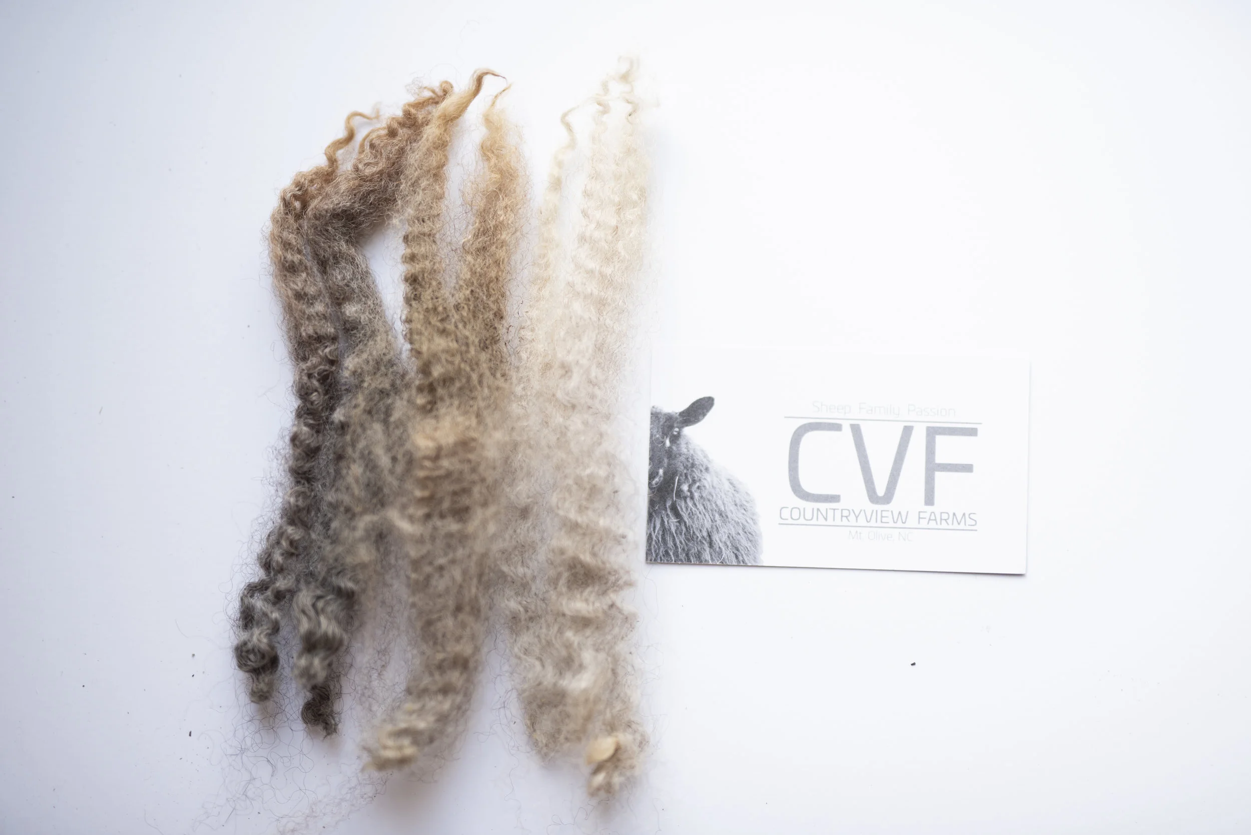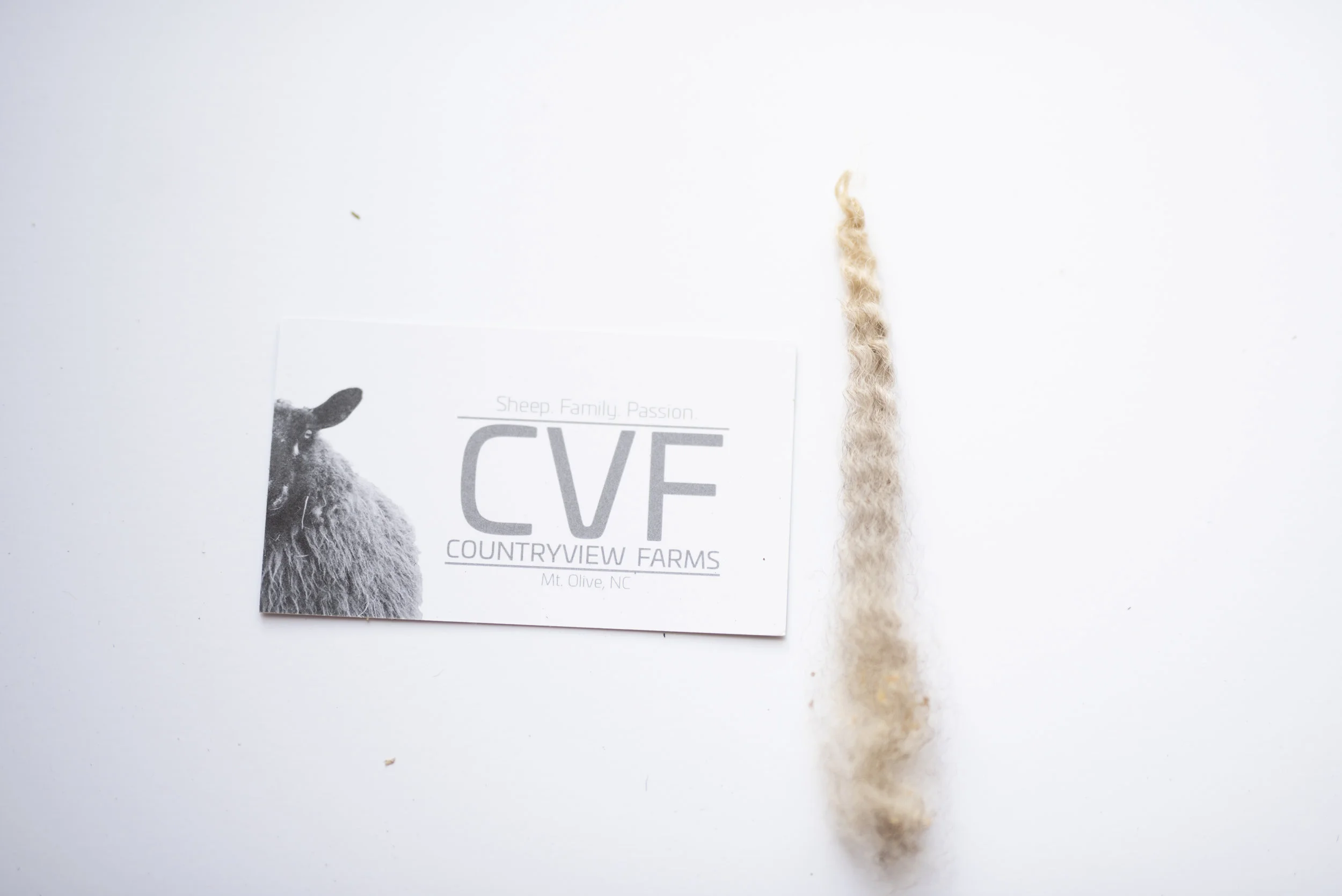 Silver’s fleece is super unique. Not only is she part Coopworth (a rare heritage breed), but she is a fun ombre (isn’t that what they call it these days?) color. Her fleece varies from dark to light as you can see in the photos. This is sure to create a unique and beautiful product that is equal to the beauty of our Silver girl. This fleece has a long staple, and fine crimp that landed her second place in her class at the NC State Fair behind her half sister.