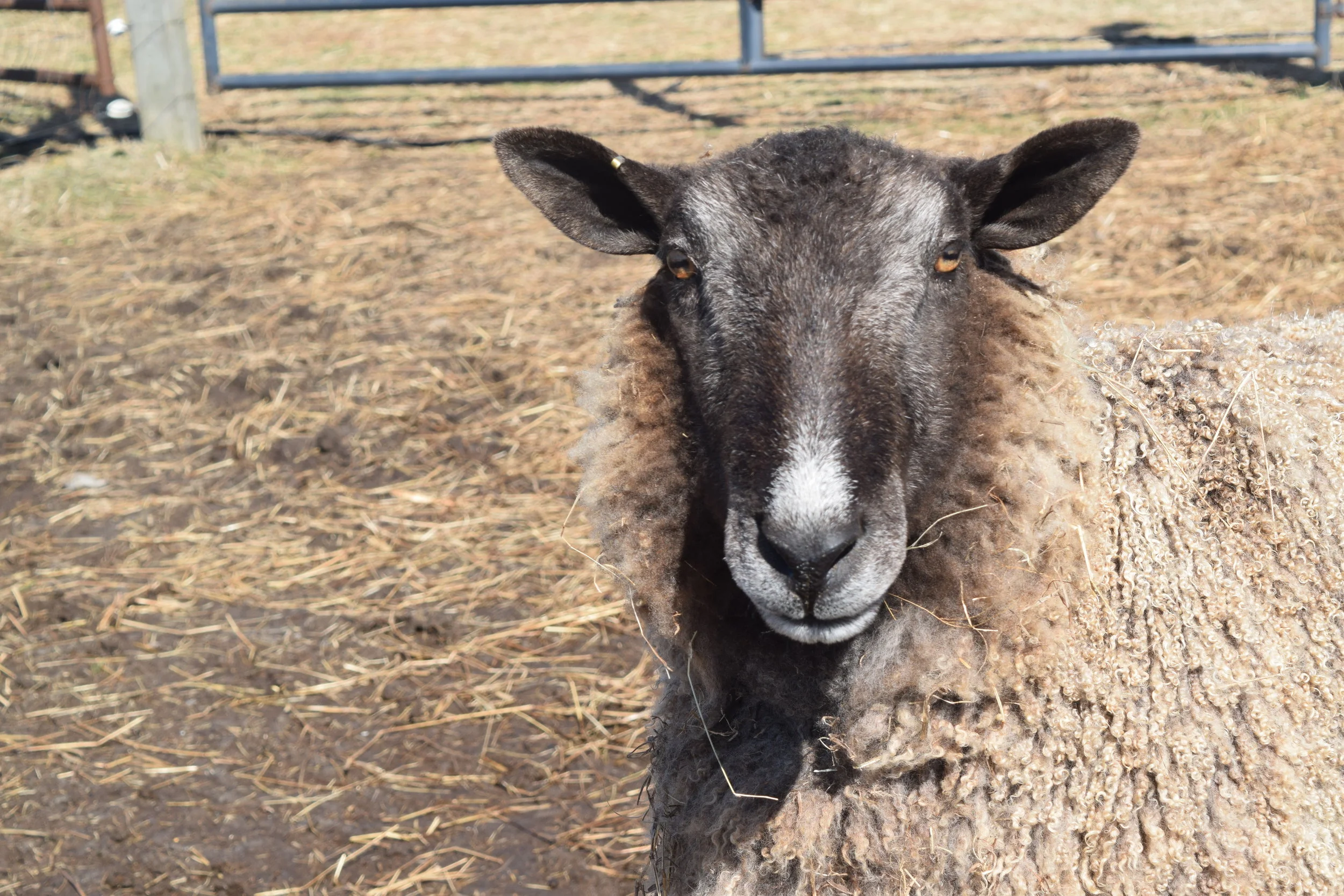 Winston’s fleece is is a soft brown/gray in color with a beautiful handle. He’s a longwool, but his fleece is on the fine side. We absolutely love working with his fleece (we’ve got some on our spinning wheel right now). It’s a great natural color as is, but would dye well to give awesome earthy tones.