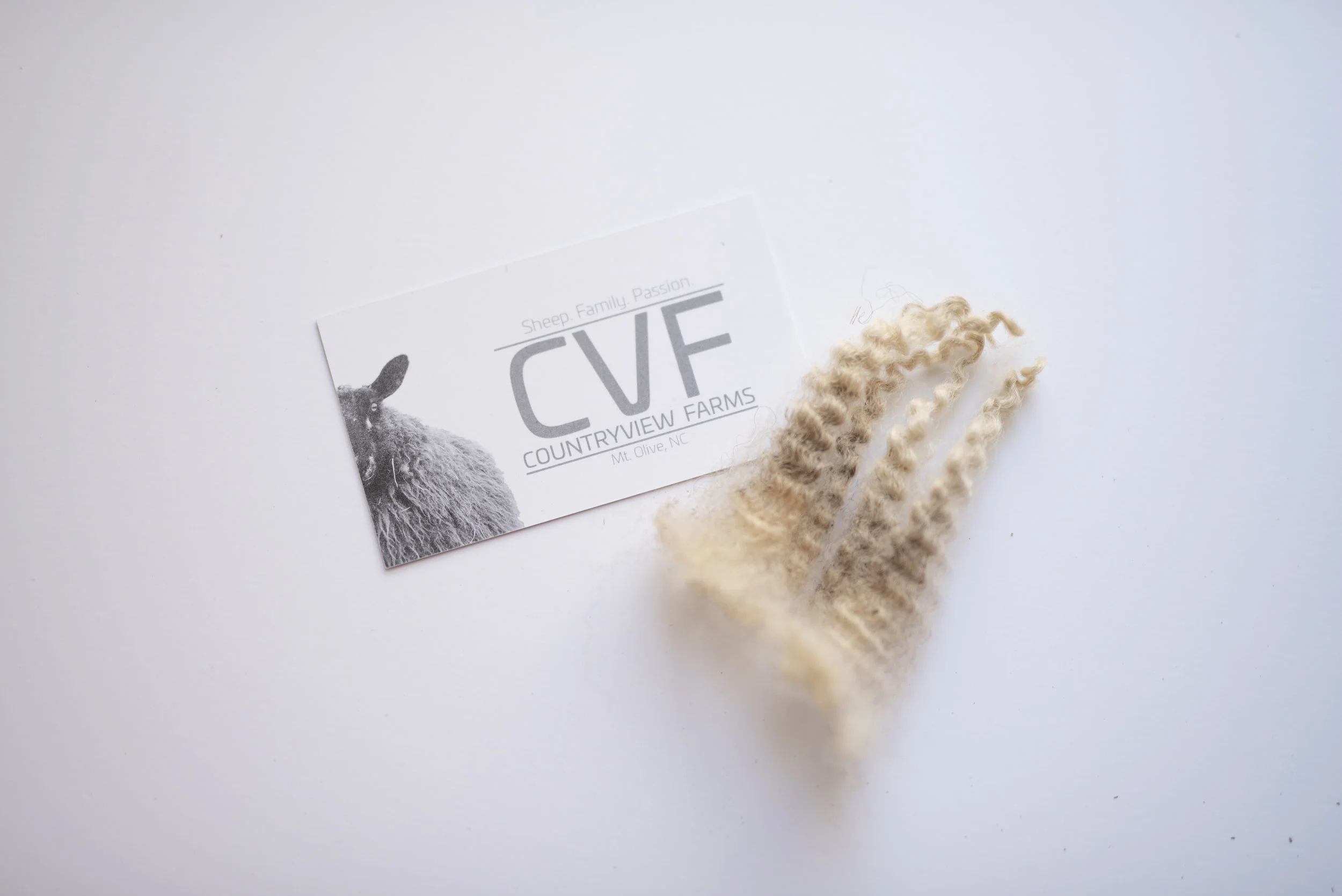 Georgette is the most decorated sheep on our farm. She has won Grand Supreme Ewe, Supreme Fleece, and Reserve Supreme Ewe at the NC State Fair. Sadly, we lost our beautiful girl this year, so this will probably be the last fleece we decide to sell of hers. While she’s a natural color, her fleece is very light—almost a cream. It’s long in staple, has good crimp and has some sheen to it. She’s always been one of our favorite girls. If you purchase this fleece, we hope you treasure it as much as we treasured Georgette.